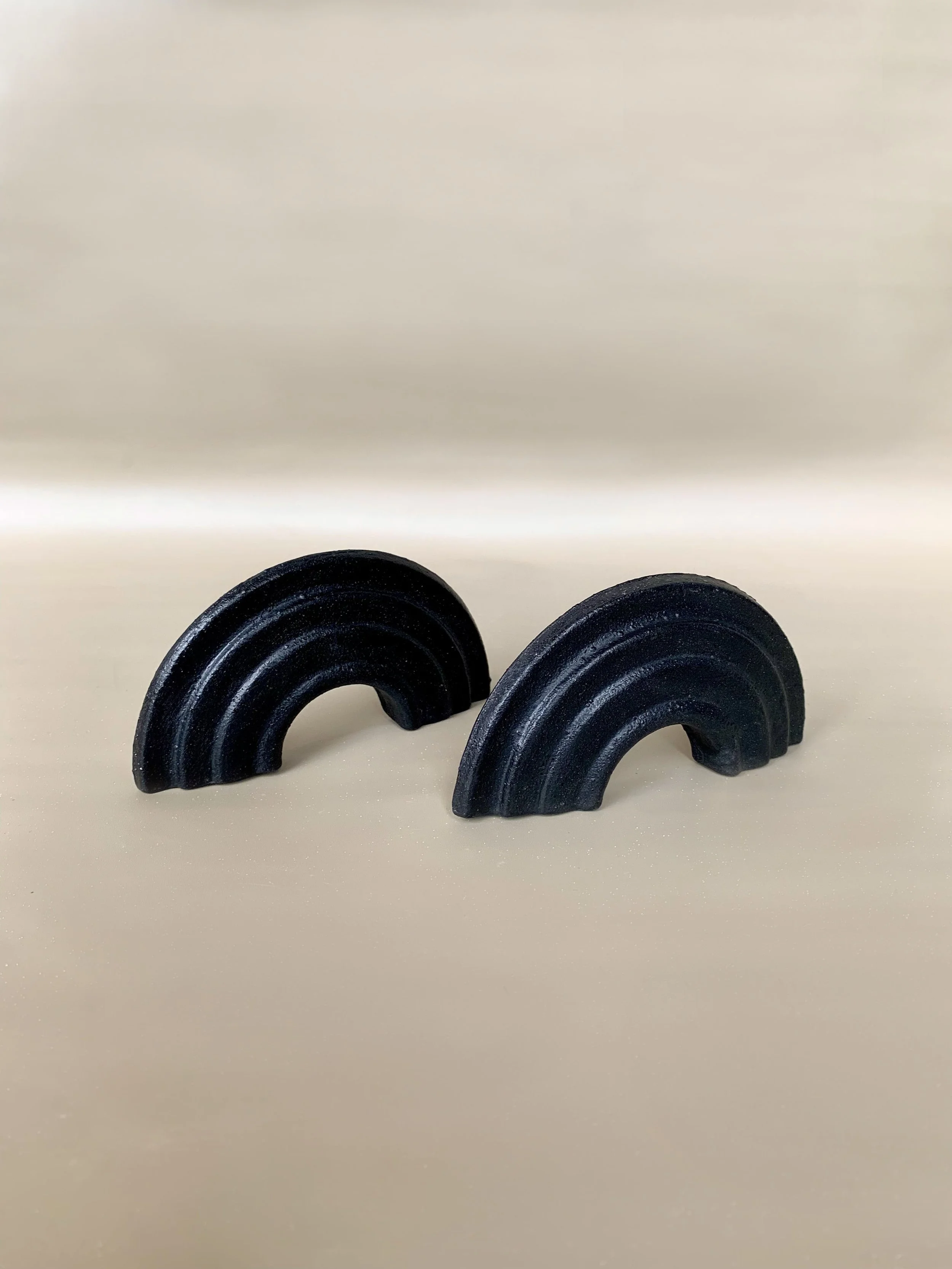 Arched glazed weights fit into the circumference of the crocks body to keep fermenting foods fully submerged to prevent any spoilage from happening.